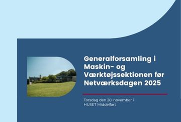 Maskin- og Værktøjssektionen inviterer til generalforsamling 2025, som finder sted forud for Netværksdagen d. 20. november på Hindsgavl Slot ved Middelfart.