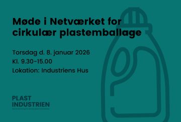 Plastindustriens Netværk for cirkulær plastemballage inviterer til netværksmøde i Industriens Hus torsdag d. 8. januar 2026 fra 9.30-15.00.