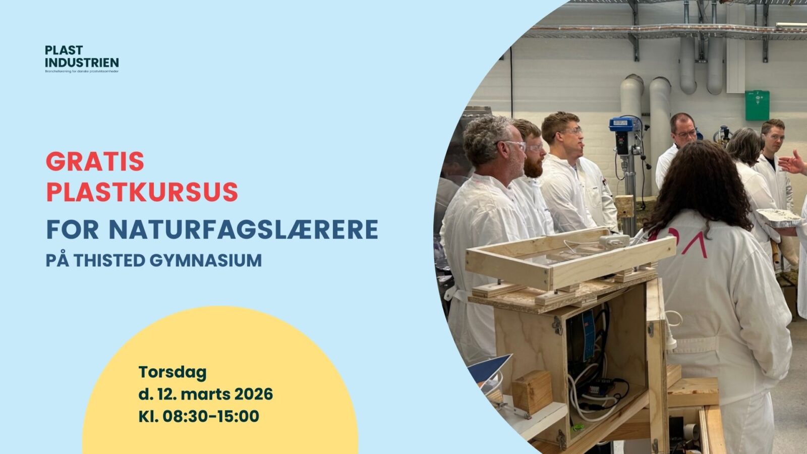 Den 12. marts inviterer Plastindustrien igen til et af vores populære gratis plastkurser for naturfagslærere. Kurset foregår på Thisted Gymnasium og rundes af med et virksomhedsbesøg hos Kirk Plast i Thisted. Det er gratis at deltage, men der er begrænsede pladser, som tildeles efter først-til-mølle-princippet.