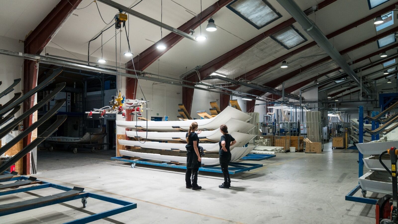 De seneste år har EM Fiberglas investeret markant i både kapacitet og udstyr – blandt andet en ny malerafdeling med høje certificeringskrav og automatiserede robotanlæg til serieproduktion. Flere af løsningerne er udviklet i huset, herunder støbeforme i ét stykke til store emner – noget, man ikke møder mange steder i branchen.